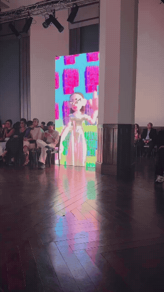 Every animation was developed with a visual narrative that complemented the theme of each runway: digital textures inspired by fabrics, colors moving in sync with the models, and dynamic transitions that bridged art and contemporary aesthetics.