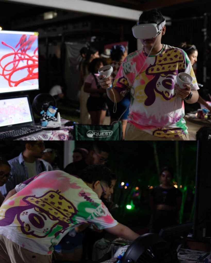 Virtual Playground (2023) is a virtual reality sculpture performance activated within art events and community spaces. In this work, Brayan Viera proposes the collective creation of a virtual world, where the act of modeling and inhabiting digital space becomes a shared experience.