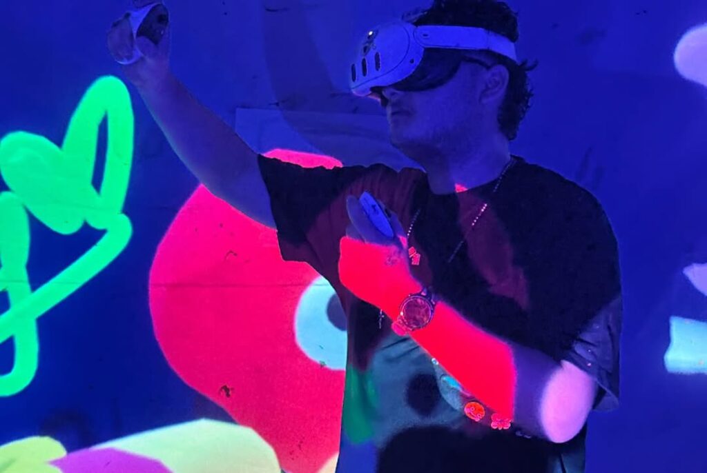 Virtual Playground (2023) es un performance de escultura en realidad virtual que se activa en eventos de arte y espacios comunitarios. En esta obra, Brayan Viera propone la creación de un mundo virtual construido de manera colectiva, donde el acto de modelar y habitar el espacio digital se convierte en una experiencia compartida.